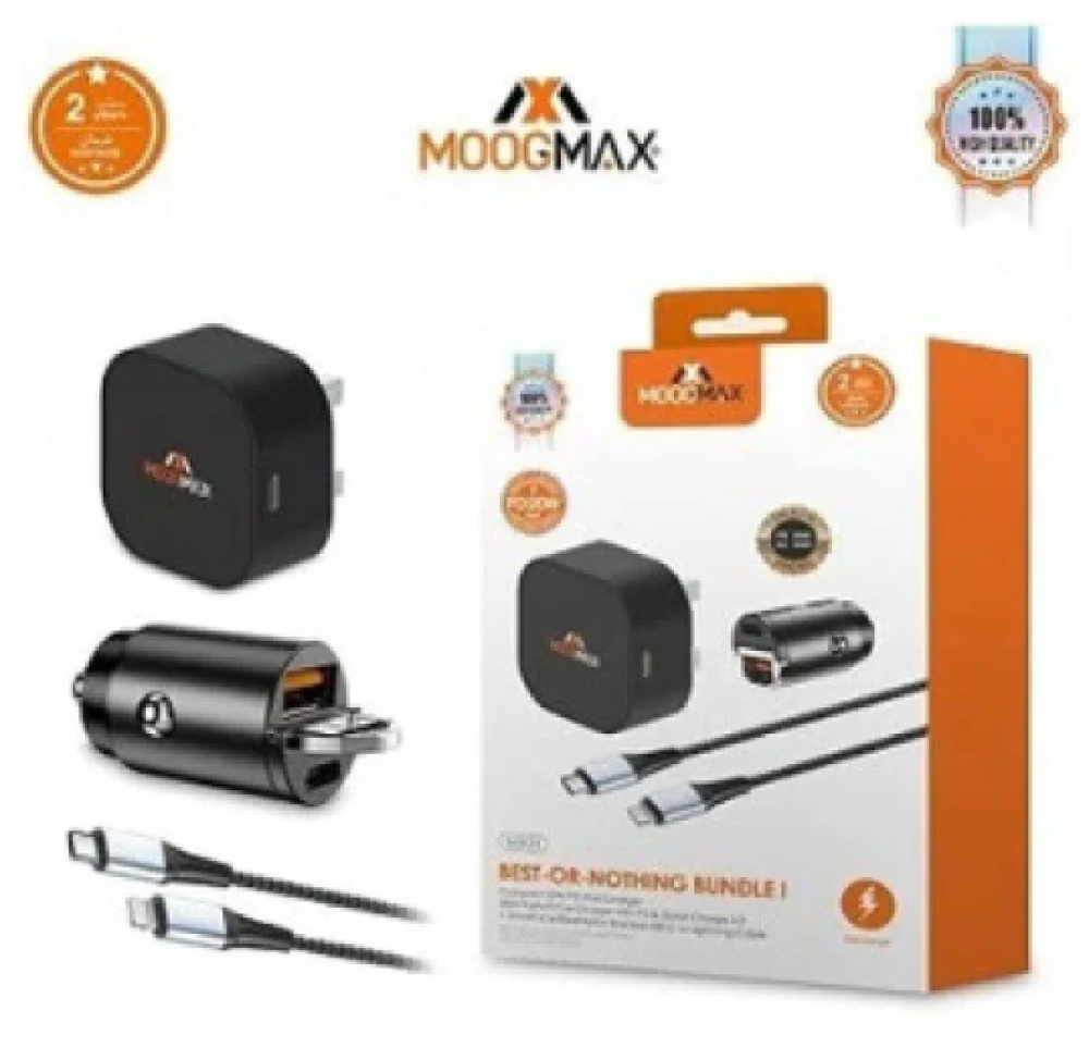 باندل راس شاحن 20 واط + شاحن سيارة منفذين 30 واط + شاحن ايفون سلك 1 متر من موج ماكس