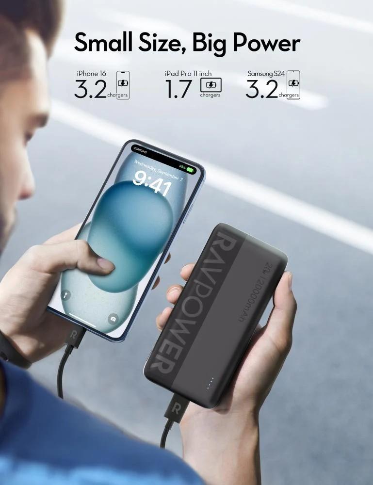 باور بانك راف باور 20 واط بسعة 20000 ملي أمبير بمنفذين تايب سي ومنفذ USB – أسود🔋 كفاءة عالية وشحن سريع في تصميم متنقلاحصل على باور بانك من راف باور بق...