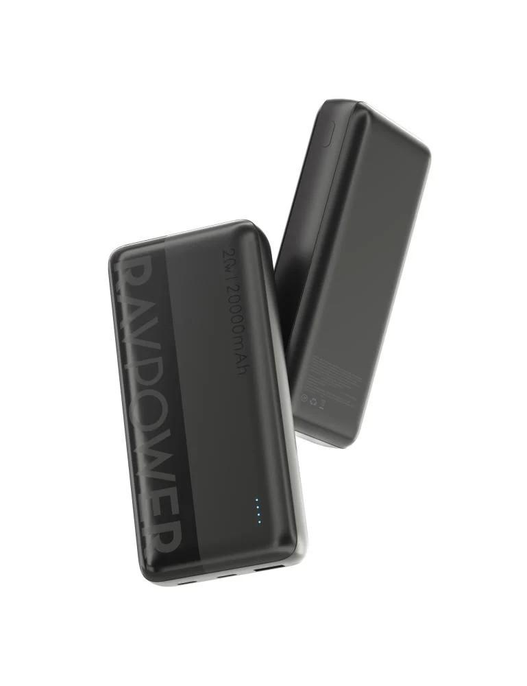 بطارية راف باور بقوة 20 واط بسعة 20000 ملي امبير منفذين تايب سي و منفذ يو اس - اسود