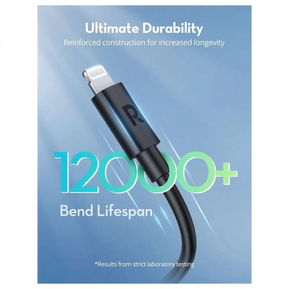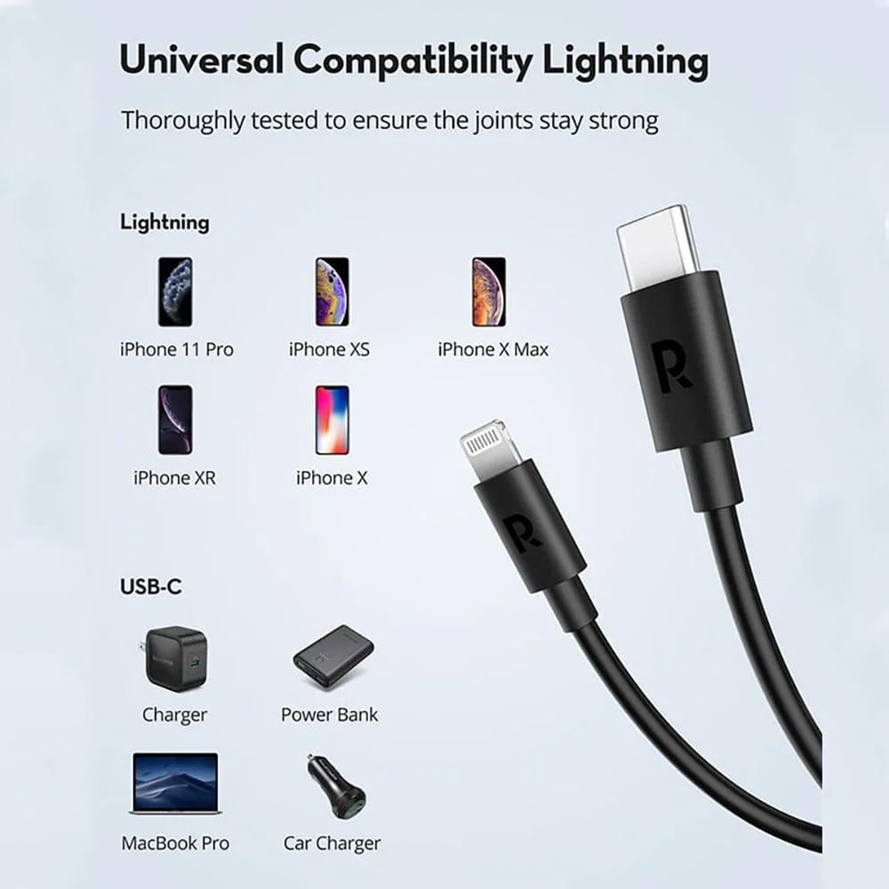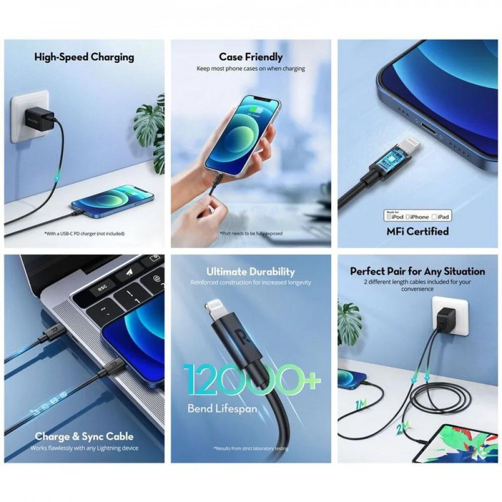 كومبو باندل راف باور 2 كيبل 1 متر و 2 متر منفذ تايب سي إلى لايتننق لون أسود
