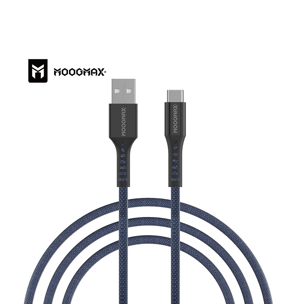 شاحن تايب سي سلك قماشي جودة عالية ماركة موج ماكس لون أسود 1 متر كحلي