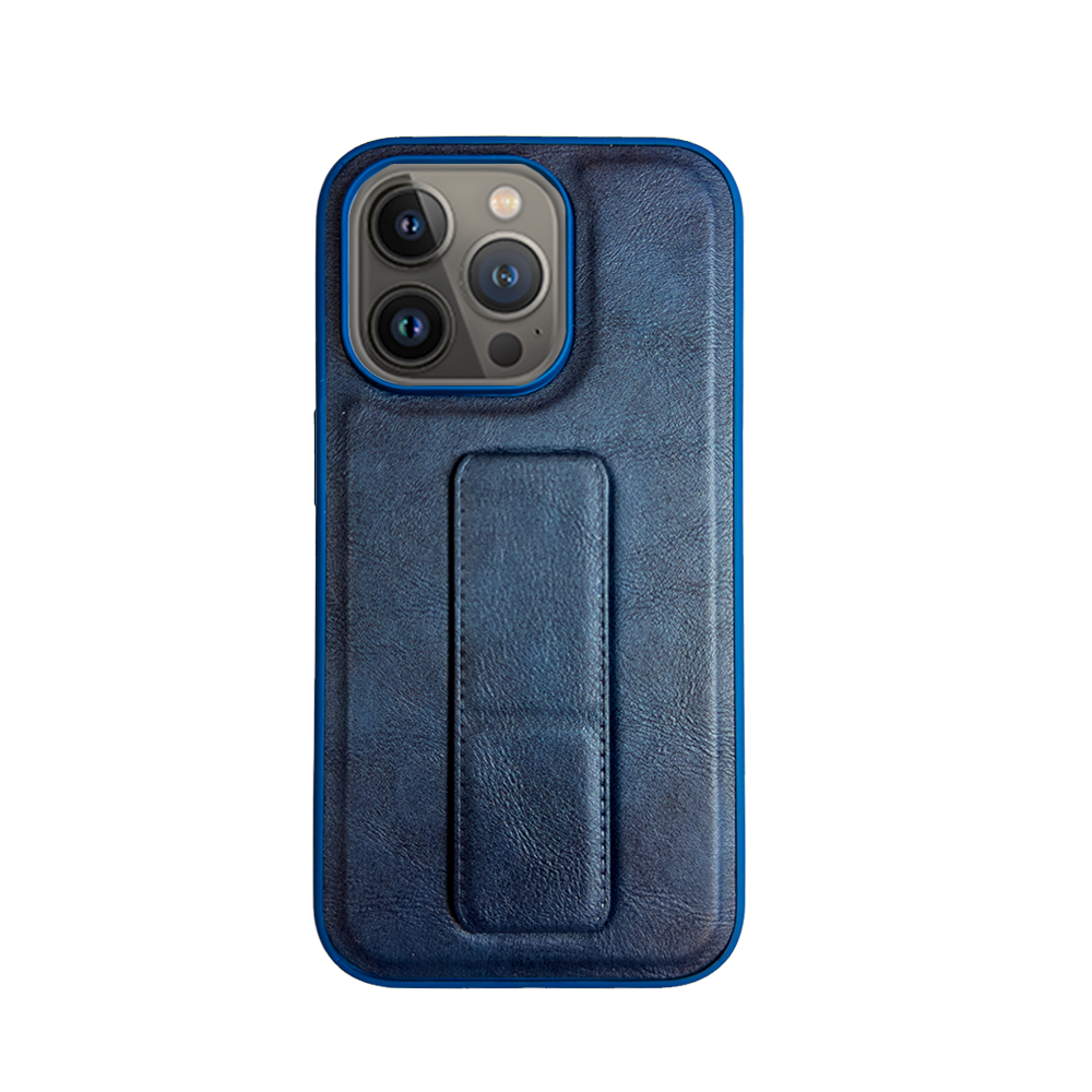 كفر ايفون 15 برو جلد فاخر مع مسكة ستاند مغناطيس لون كحلي