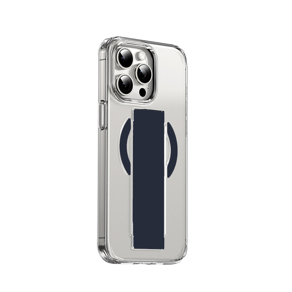 كفر ايفون 16 برو ماكس شفاف مع مسكة فاخرة تدعم الشحن اللاسلكي الماج سيف لون كحلي