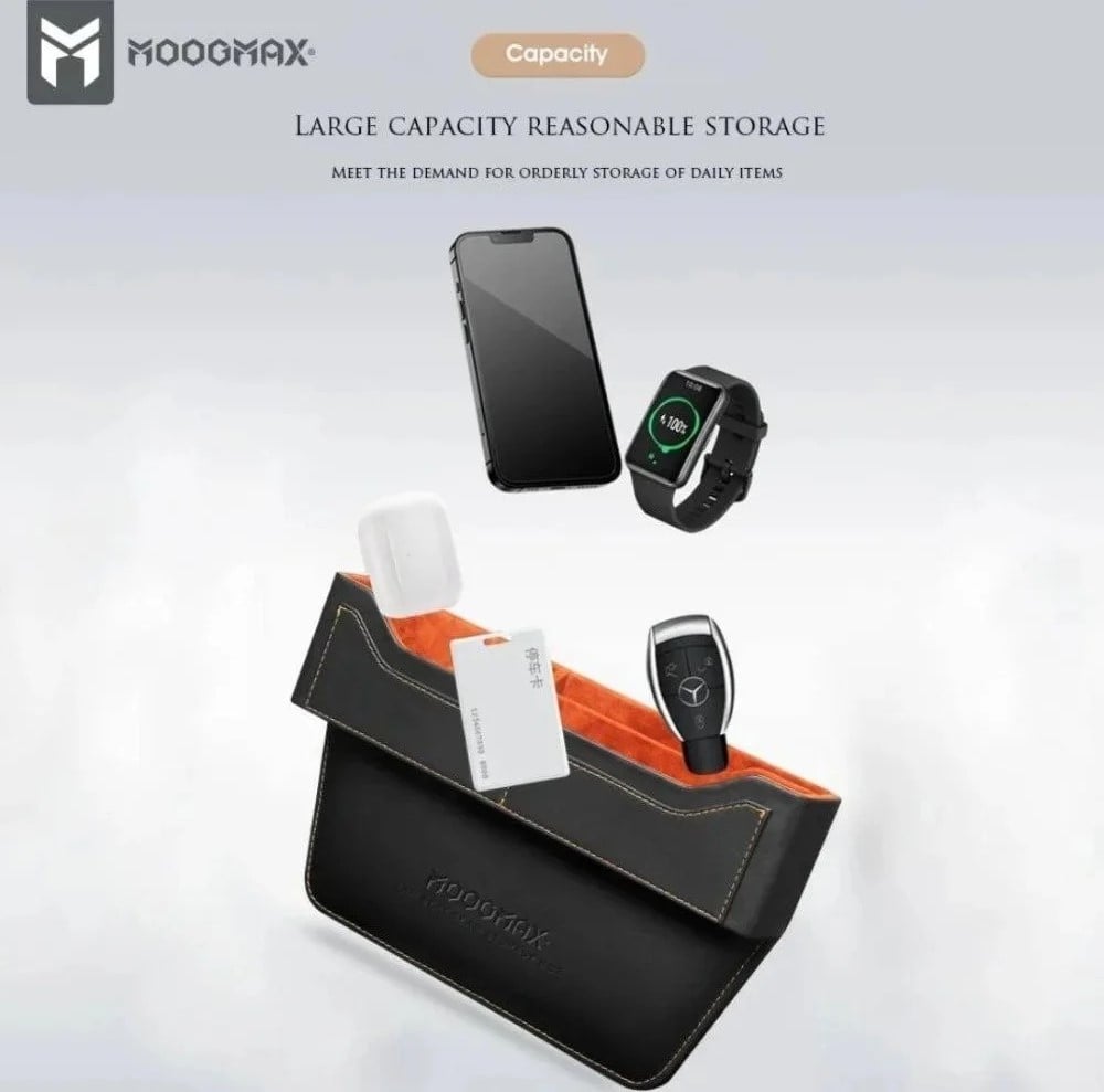 منظم لأغراض السيارة، من ماركة موج ماكس، ويستغل المساحة بين مقعد الراكب وهيكل السيارة، ويتميز بعدة مواصفات: